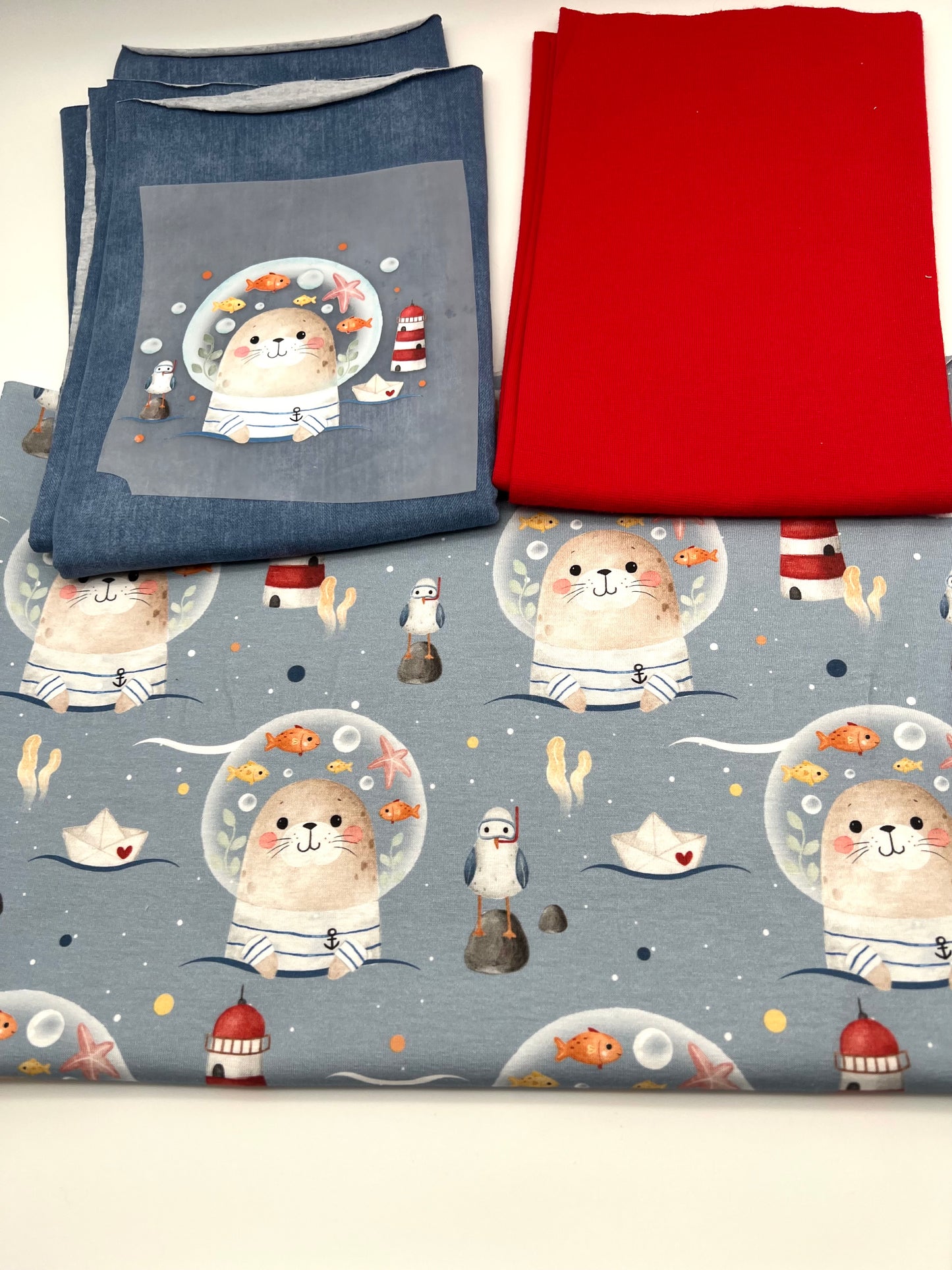 Stoffpaket Jersey „Robbe“2 mit Bügelbild